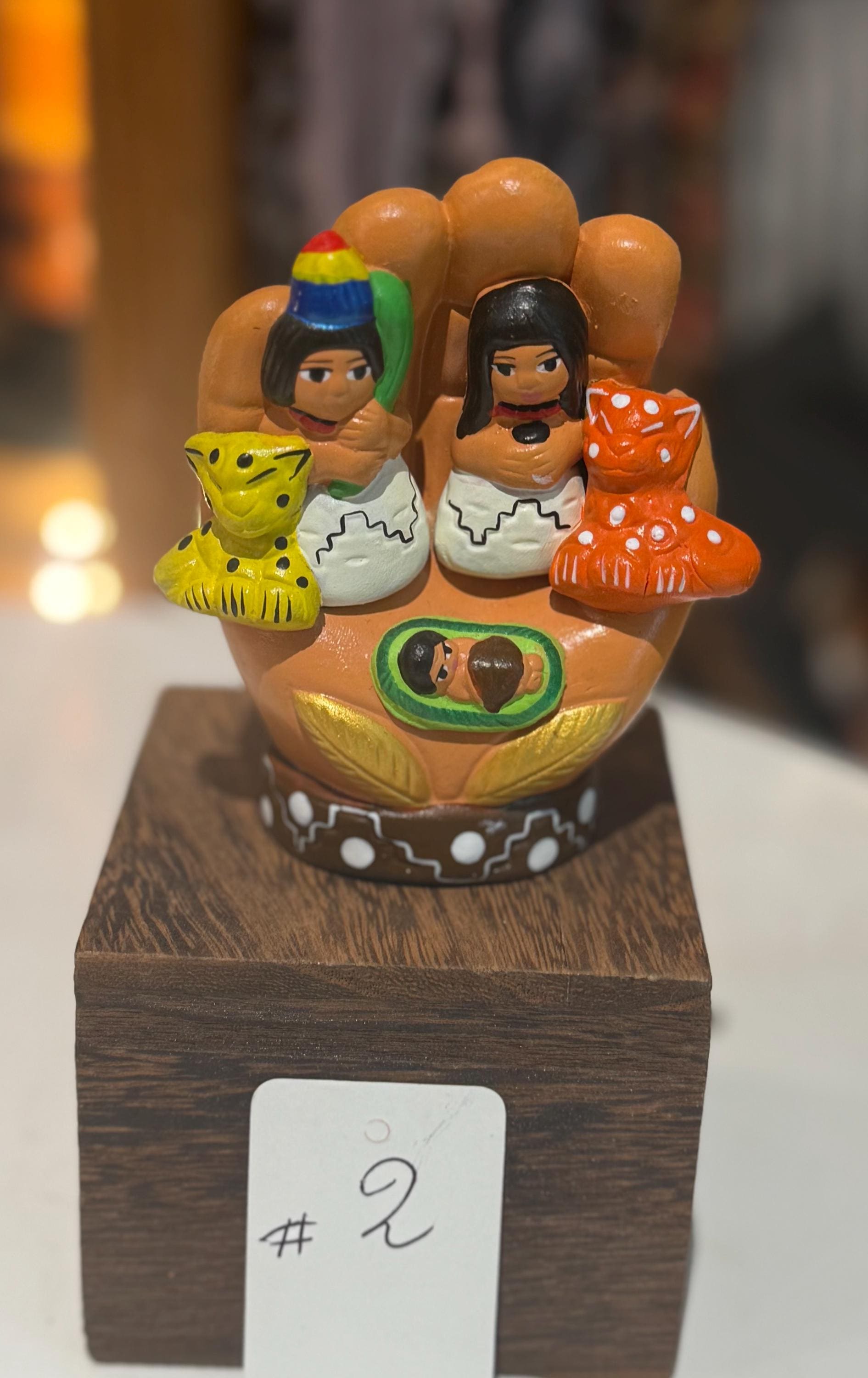 Indulge in the charm of these meticulously crafted miniature Nativity scenes, each a testament to the skill of Peruvian artisans. With a nod to the diverse regions of Peru, these unique pieces capture the essence of the country's cultural richness. Measuring approximately 3x3 and3x4 inches, these treasures offer a captivating portrayal of the Nativity story. Please note that due to their handmade nature, slight variations in size may occur, adding to the individuality of each piece. Add a touch of Peruvian artistry to your festive decor with these captivating ceramic Nativity miniatures.