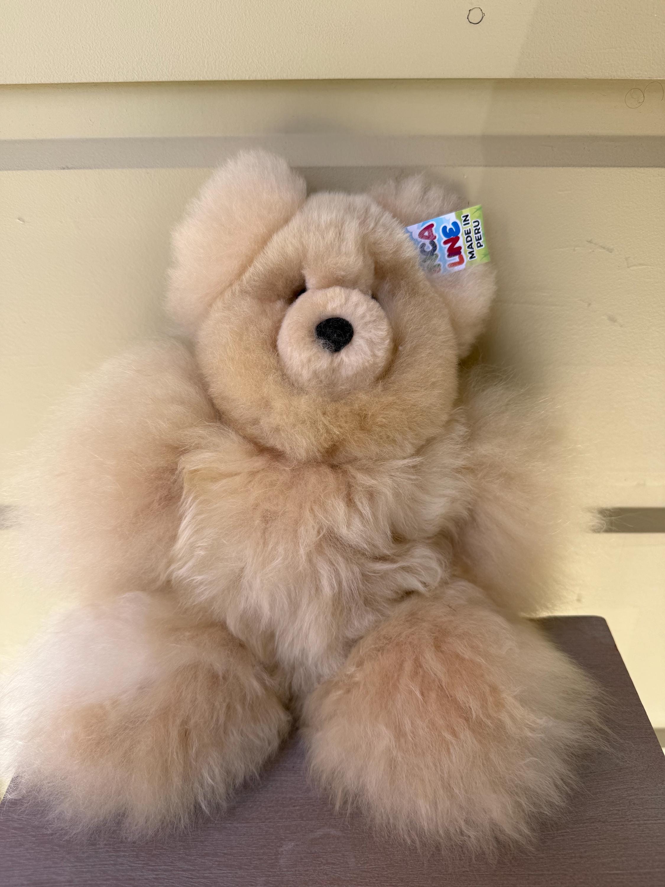 Bring home a piece of Peruvian artistry with this lovingly crafted alpaca wool teddy bear. It’s more than just a toy—it’s a timeless piece of handmade craftsmanship to cherish.the medium teddy is 13x10 inches