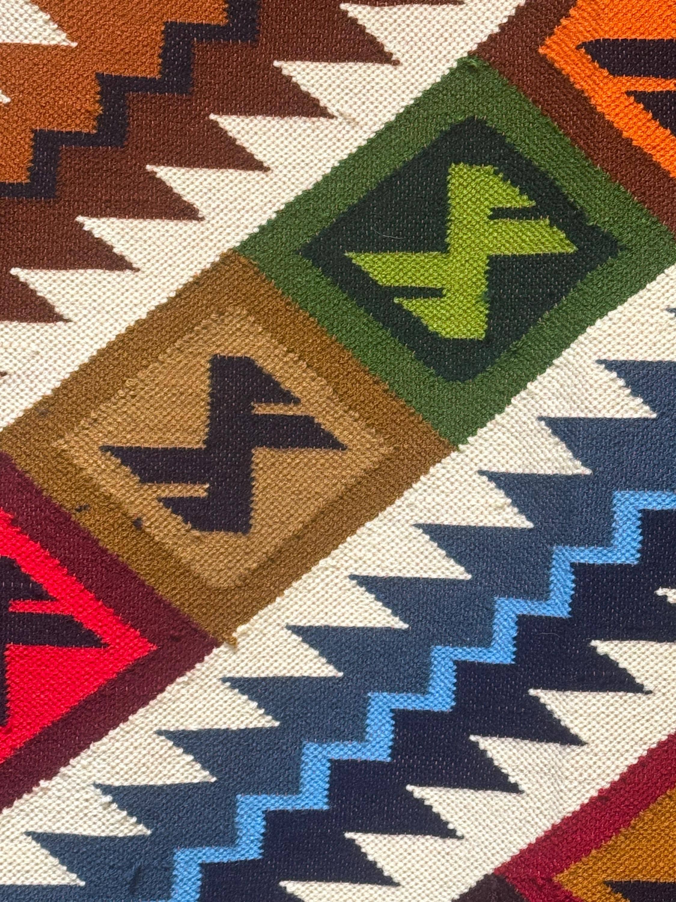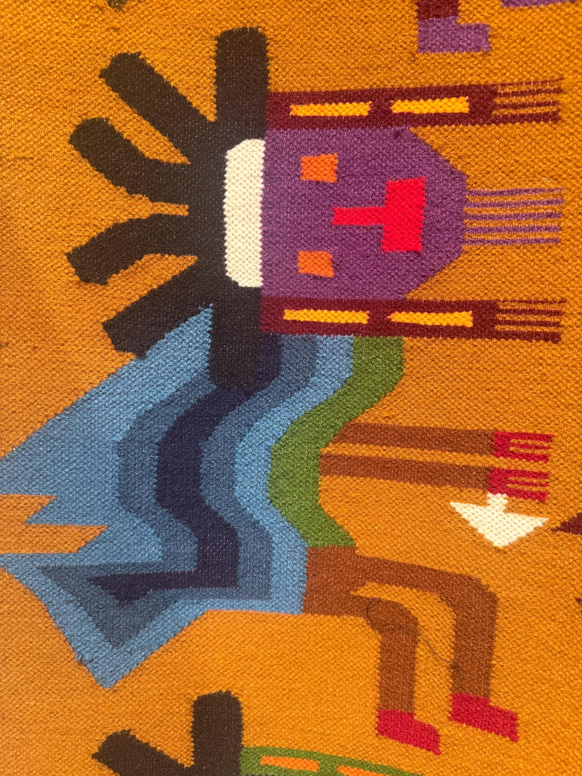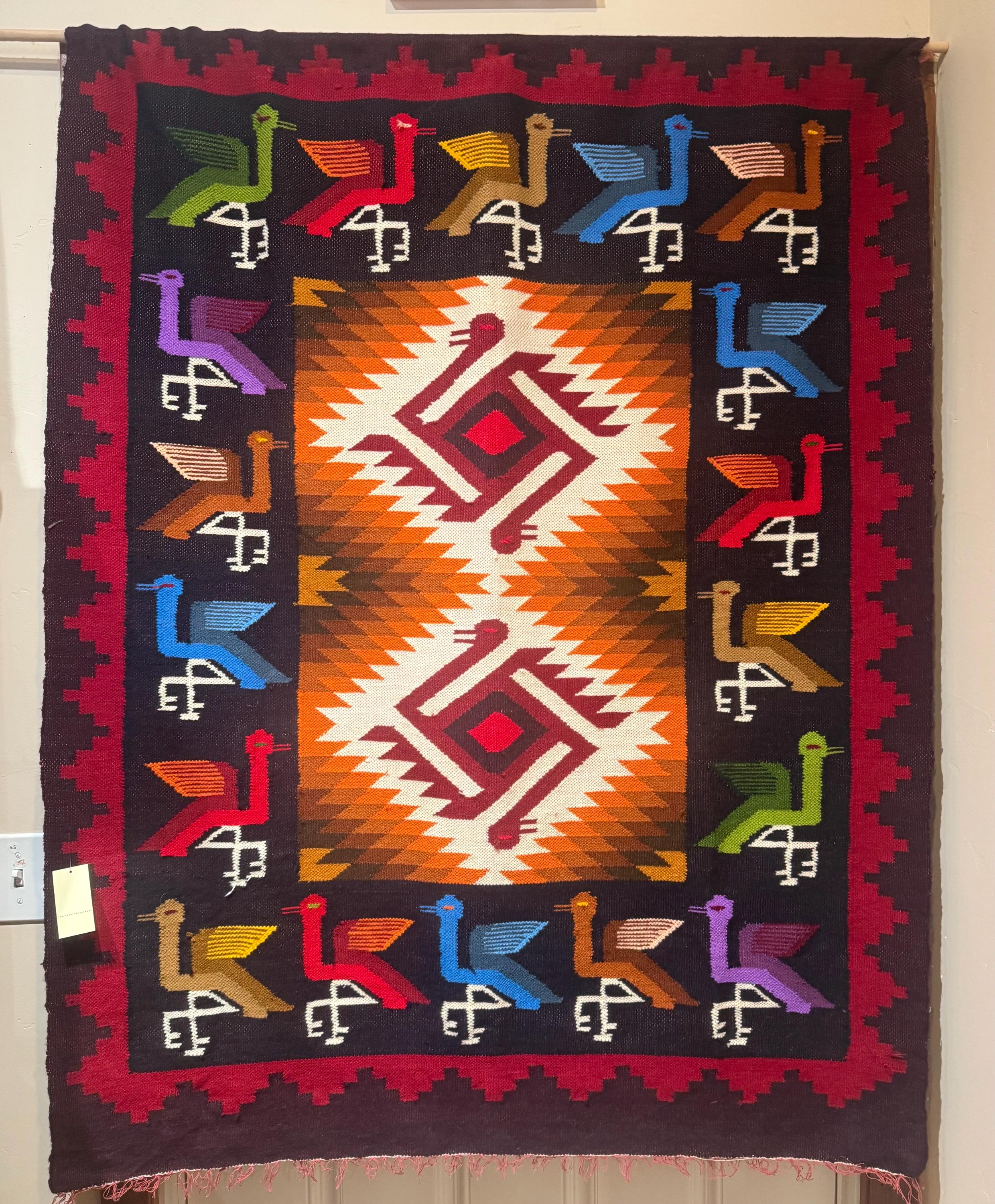 This tapestry is handwoven by Peruvian Indigenous artisans. It is made of pure fibers and features traditional designs inspired by our ancestors from Peru the size is 56x43 inches